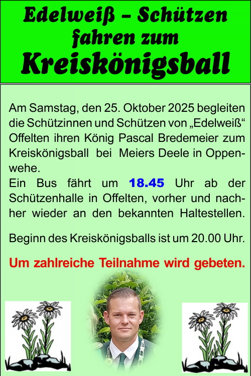 | © Copyright Schützenverein "Edelweiß" Offelten e.V. | Letzte Änderung: 21.10.2025 | Erstellt mit